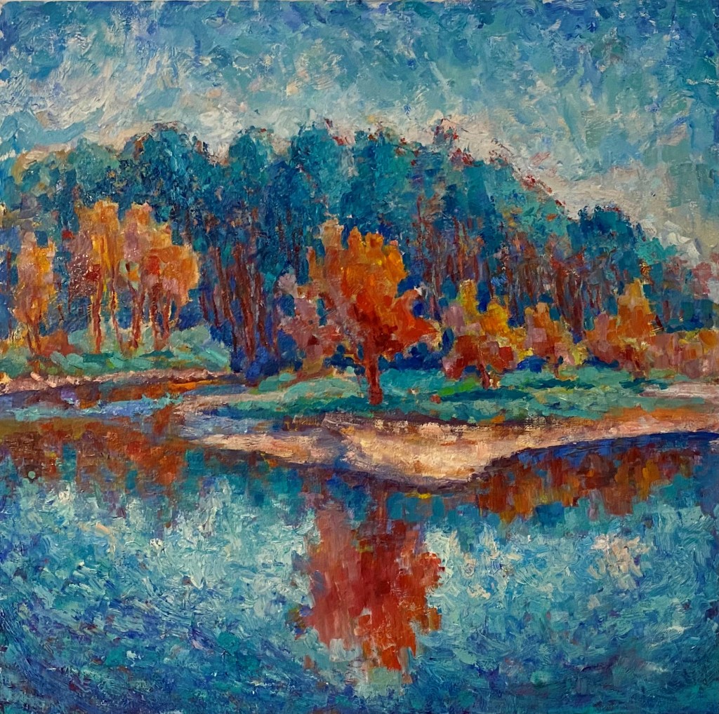 The painting is mainly symbolic; however, it was made spontaneously and subconsciously. The elements of the painting were born in the process of applying the brushstrokes. It is a reflection and fusion of the world around me and the ideas that were formed within me, which were a result of the inner state of my soul.